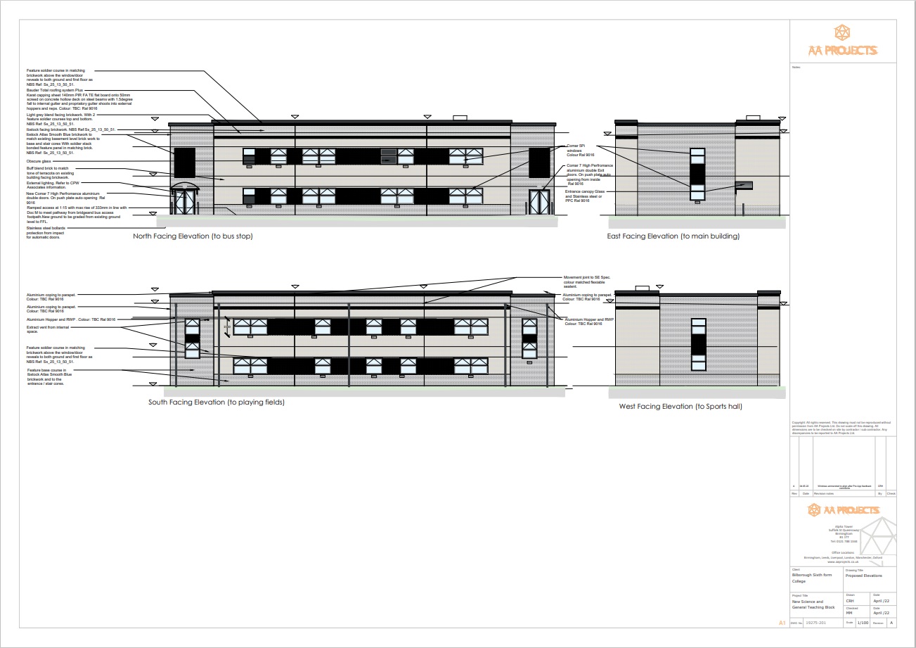 Bilborough College extension gains planning permission / Elevations